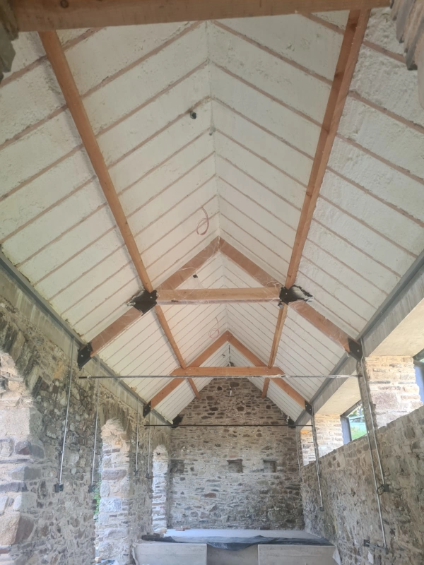 As per building regulations a 50mm air gap must be left before the foam can be sprayed. Applying a breathable vent card removes this problem. The vent card is only needed when open cell spray foam is used, as closed cell foam is not "Breathable".