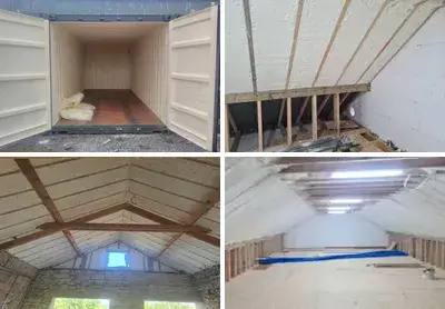 Closed cell spray foam insulation is used to insulate any metal or concrete surface. It is used to insulate sheds and shipping containers and provides excellent thermal efficiency, strengthens the structure, is quick and easy to apply and prevents damp and mold.
